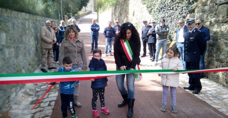 Taglio del nastro a Castel Porrona per la fine dei lavori che hanno interessato via della Piaggia, la principale strada di accesso al borgo medievale.